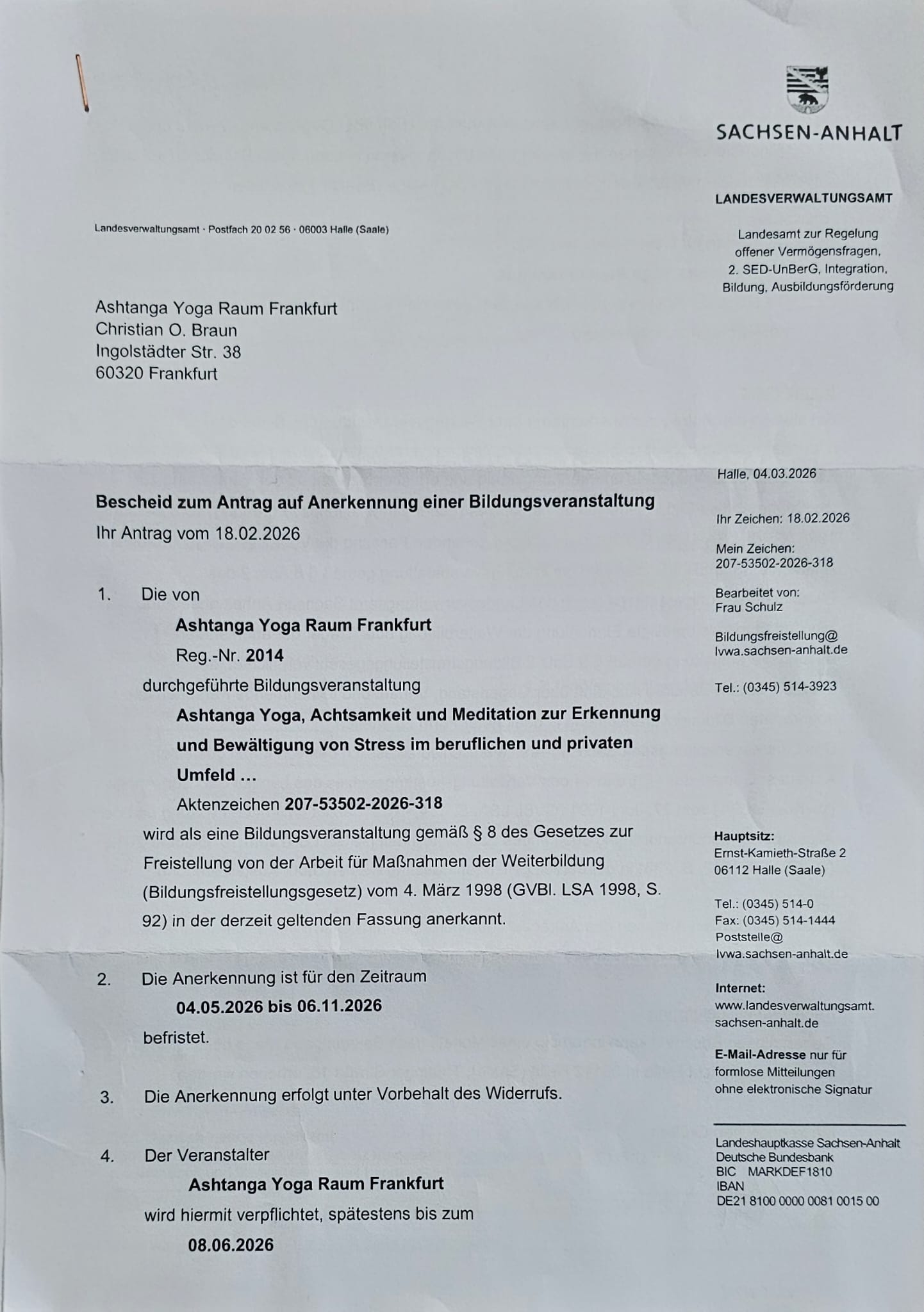 - Veranstaltungsanerkennung für den Arbeitgeber: